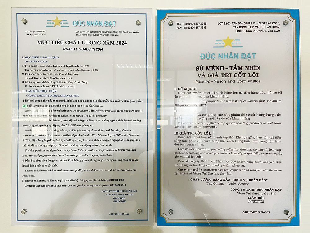Đến với Công ty TNHH Đúc Nhân Đạt - Quý khách hoàn toàn yên tâm, tin tưởng và hài lòng với phương châm phục vụ